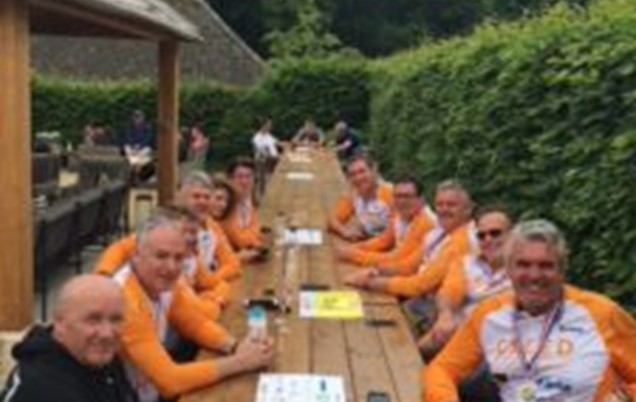 At 2pm the tired-looking cyclists began to cross the finishing line but we were ready for them with a medal and a glass of Taittinger Champagne, courtesy of Hatch Mansfield. Calcot also laid on a great BBQ with the kind help of Creed Foodservice team and the cyclists sat in the hotel garden enjoying the sunshine as they waited for their team mates to return.