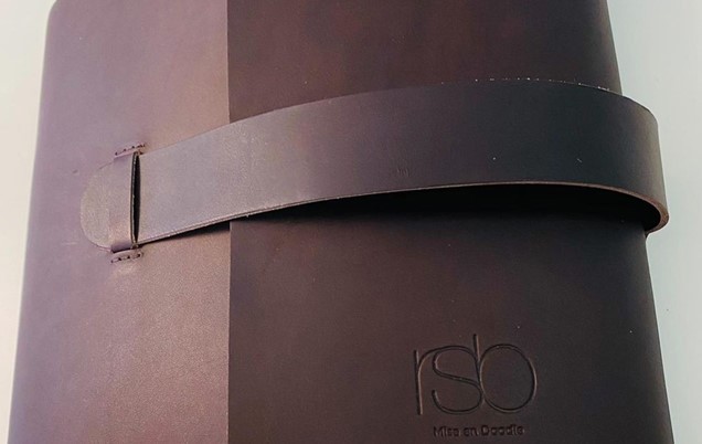- Bespoke leather book slip – Logoed, stitched and numbered