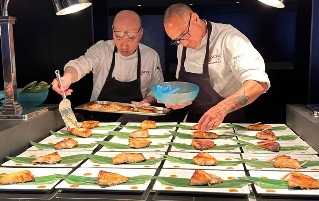 The meal began with a delicate starter of crab, kohlrabi, celery, and burnt lettuce – kindly sponsored by Hodgson Fish. This was followed by a fish course of black cod miso, with thanks to Reach Food Group and Classic Fine Foods for their generous support.